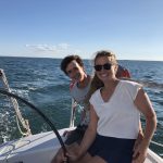 Nous sommes fin prêts pour partir naviguer à bord J For Two. Le ravitaillement fait, les voiles et moteurs révisés et les sacs sont rangés pour la gite. Nous prenons la mer lors d’une belle journée. 2 raz à passer : le raz de Barfleur et le raz Blanchard. Le J file sous le vent et nous profitons pleinement du confort en mer. Étudié pour naviguer en équipage réduit, naviguer à bord J For Two est un vrai régal. Après une journée passé en mer, nous sommes arrivés à Aurigny sur notre mouillage. Place désormais à l’apéro, avec une invitée surprise 😉
