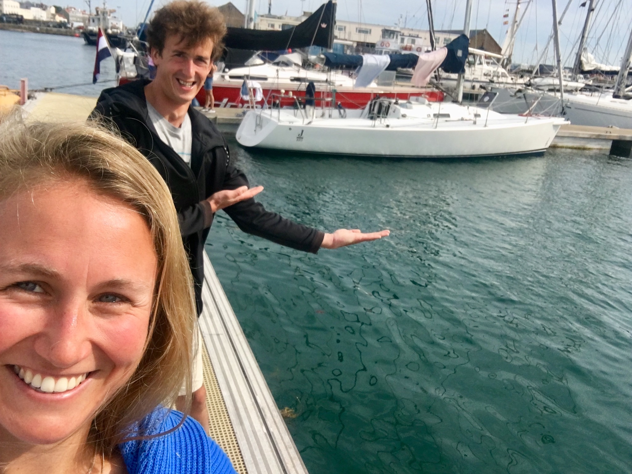 We are ready to set sail aboard J For Two. Provisions complete, the sails and engine have been checked, and bags stowed for when the boat heels. On the day we are leaving the weather is beautiful. There are 2 tide-races to go through: the Barfleur race and the Alderney race. J for Two sails easily downwind and we take full advantage of how comfortable the boat is. Designed for shorthanded use, J For Two is very easy to handle under sail! After a day at sea, we arrive in Alderney where we anchor. We start the evening with an aperitif, and with a surprise guest!